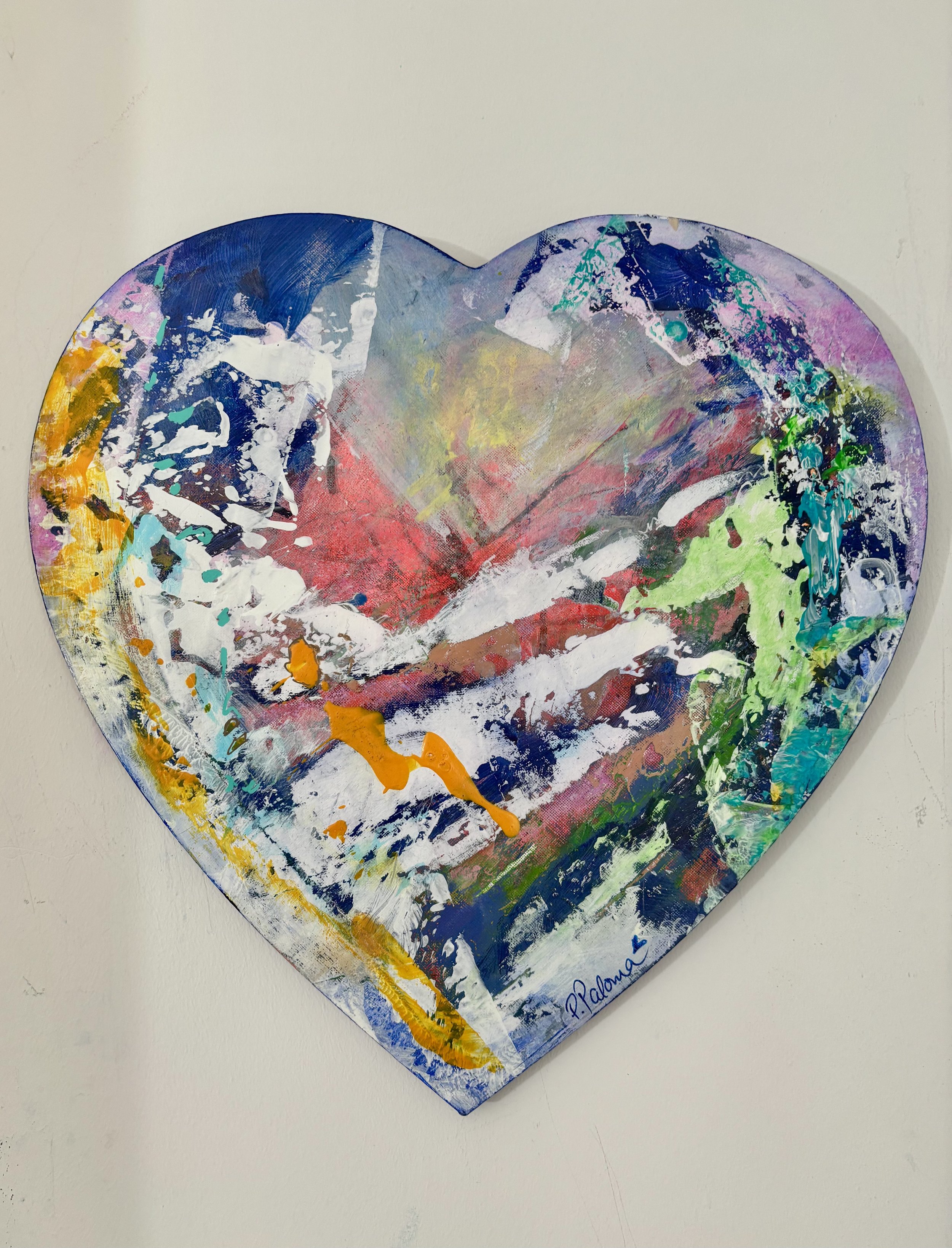 Shop/Gallery › Heart (40 x 40 cm) Image 1 of 5 Image 2 of 5 Image 3 of 5 Image 4 of 5 Image 5 of 5 Heart (40 x 40 cm) £83.00 Acrylics on canvas - 40cm x 40 cm / hooks on the back so ready to hang. Looks lovely with tea light behind it. Purchase Added! Acrylics on canvas - 40cm x 40 cm / hooks on the back so ready to hang. Looks lovely with tea light behind it.